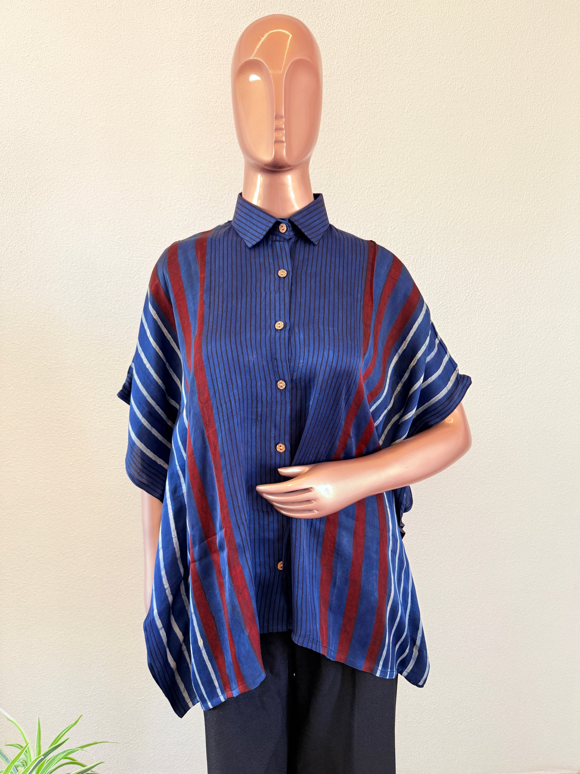 Ajrakh Print Kaftan Shirt - Blue