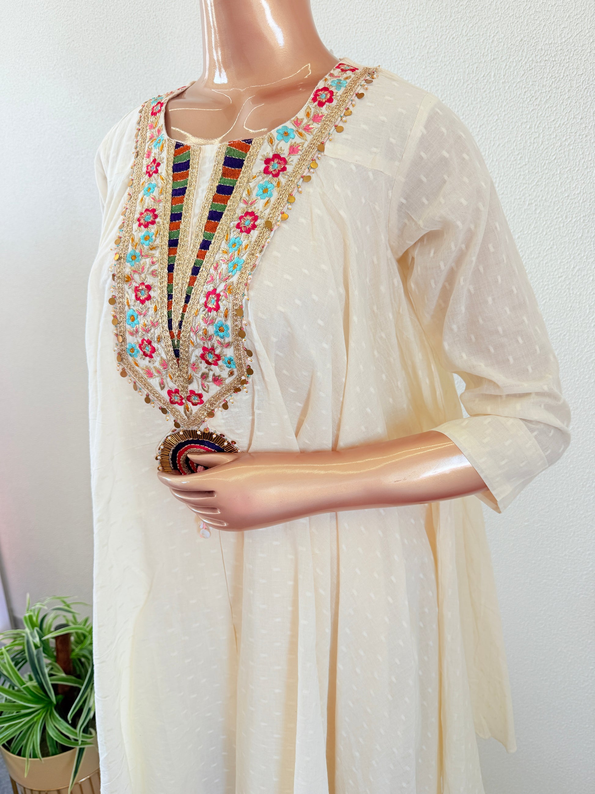 To ensure the longevity and quality of your garments, we recommend DRY CLEANING ONLY. Professional dry cleaning will help preserve the delicate fabric and intricate design details. Avoid washing at home to prevent potential shrinkage or damage to the fabric. Trust a reputable dry cleaner experienced with handling delicate materials to maintain the beauty and integrity of your garment.