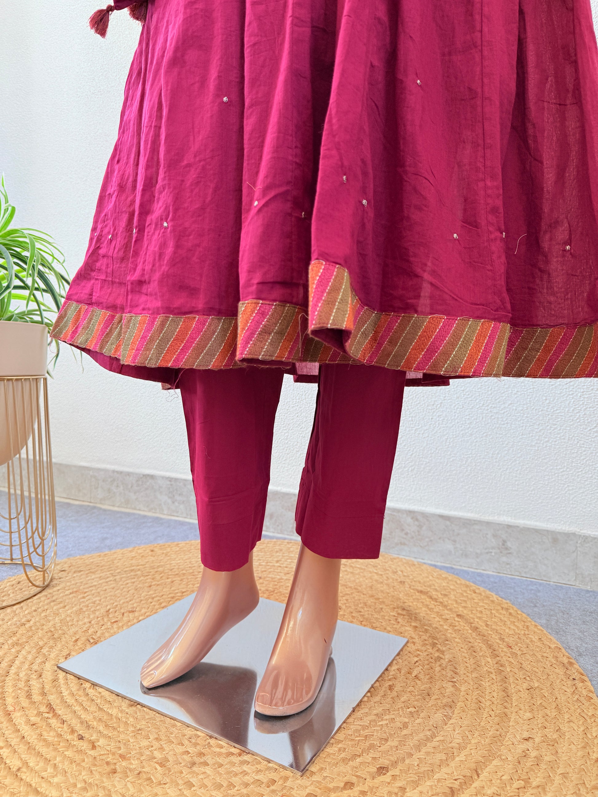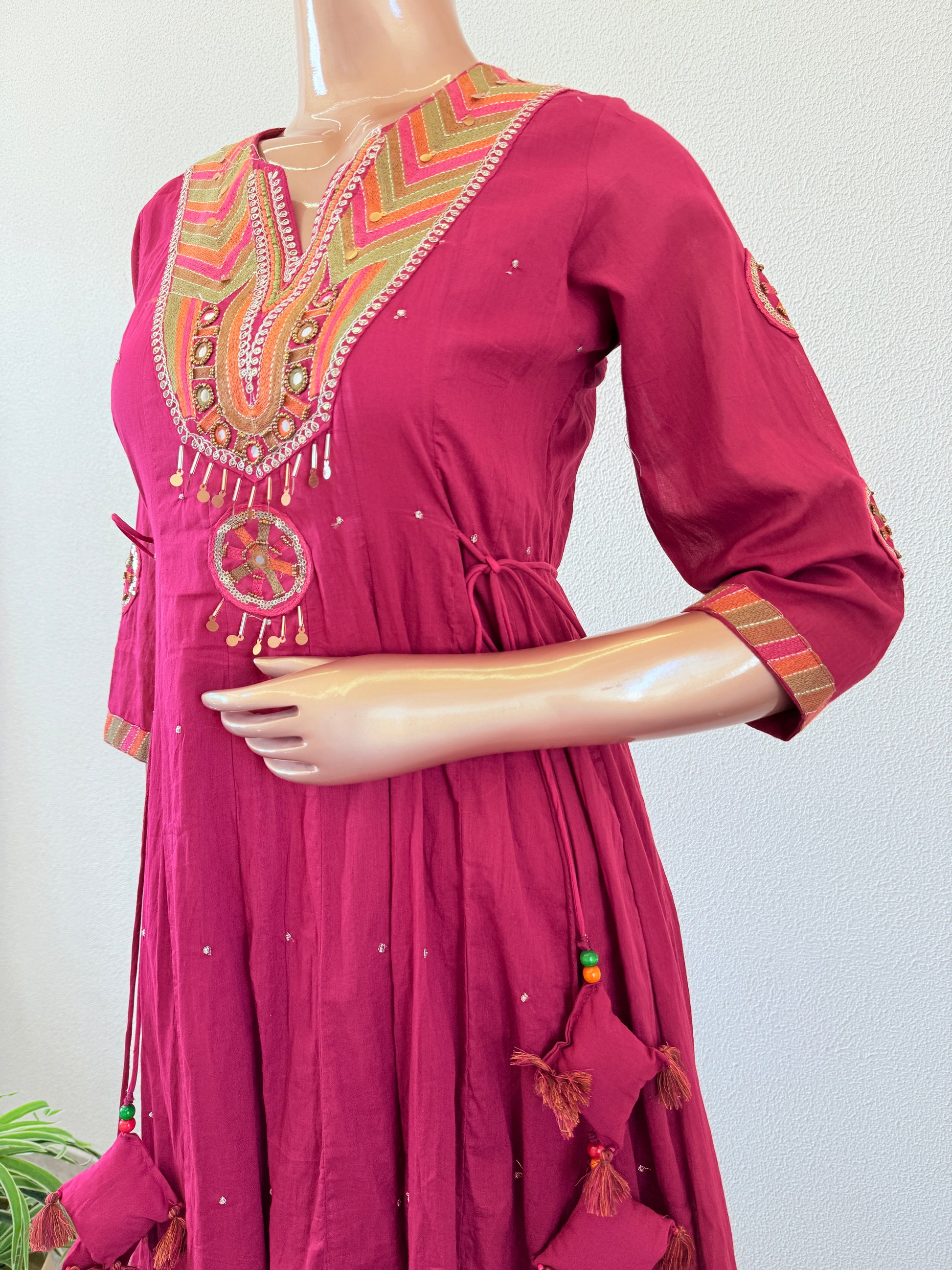 Mul Cotton Frock Suit with Heavy Neck Work - Pink