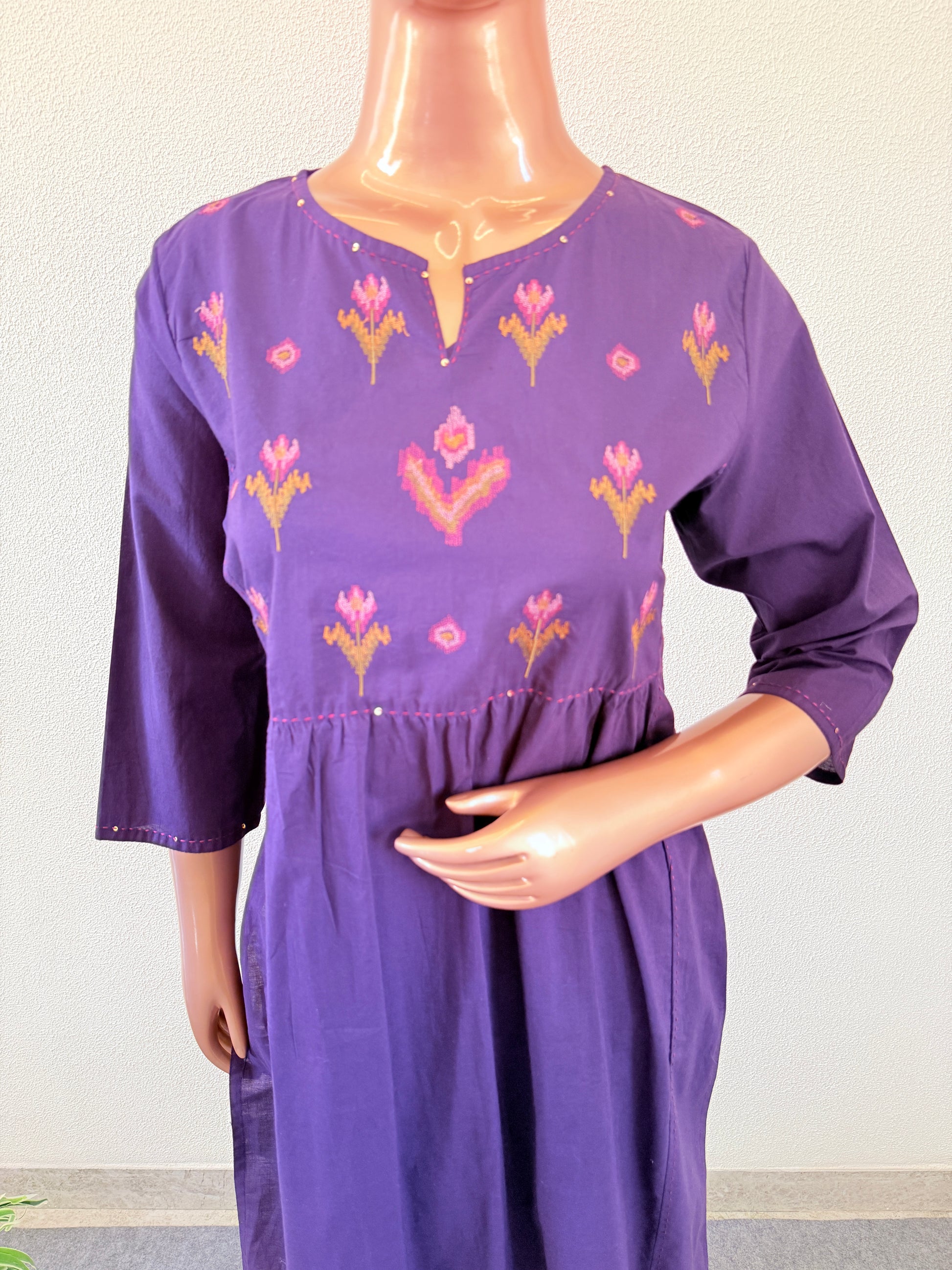 Thread Work Yoke Cotton Frock Suit